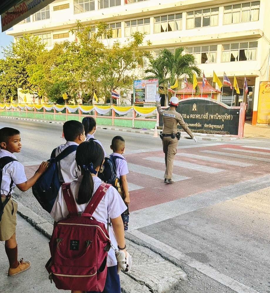 อำนวยความสะดวก การจราจร หน้าโรงเรียนเทศบาล 1 ตลาดบางลี่ (พานิชอุทิศ)